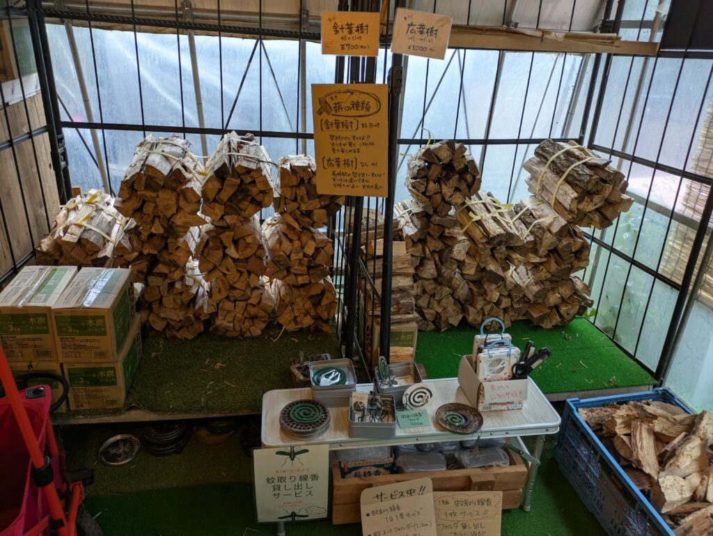 薪や炭、飲み物の販売もあります。