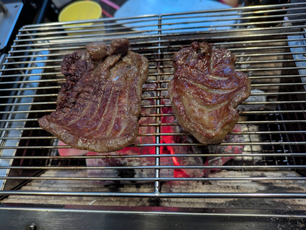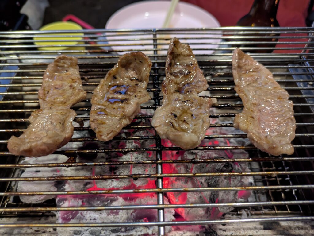 今回は、厚切り牛タン、牛ロース、ラムチョップに舌鼓。