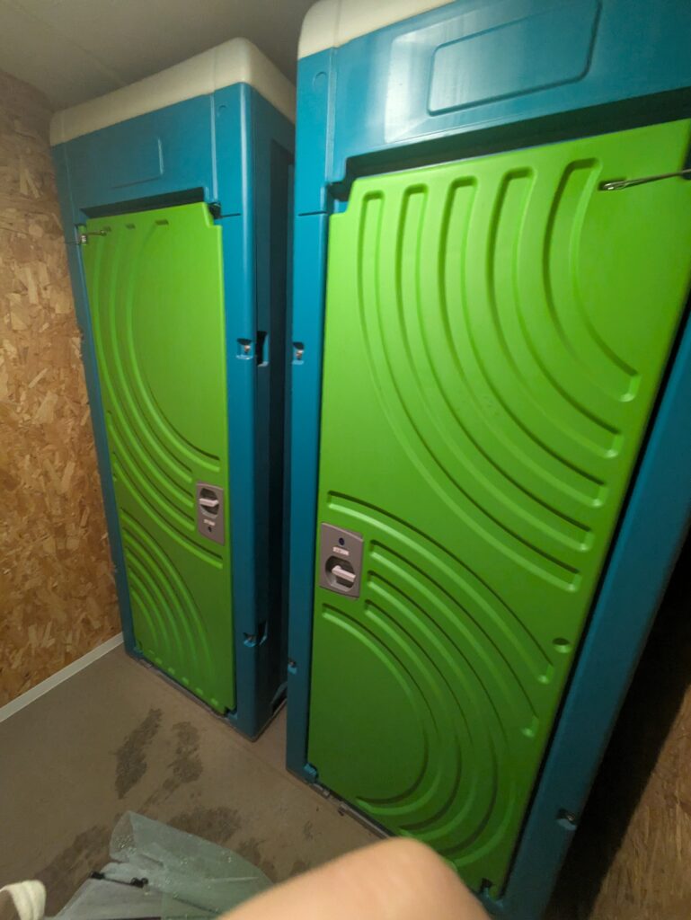 男子トイレ内部は仮設トイレの様な個室。