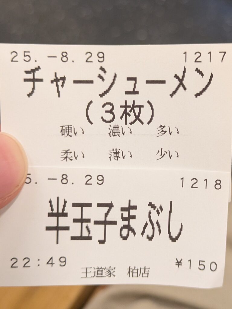 今回は2025年8月某日に訪問した千葉県柏市のラーメン店「王道家 柏店」をご紹介します。